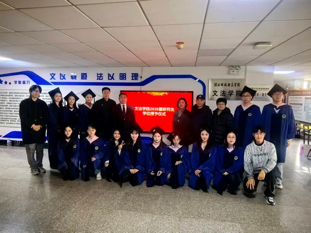 1月9日,文法学院2026届研究生毕业典礼在8楼会议室举行。本年度共有13名研究生圆满完成学业,获得学位。